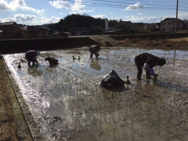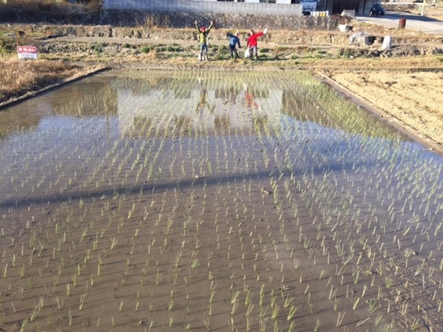 いぐさ部の岩渕です。12月17日は、いぐさの植え付けを行いました!