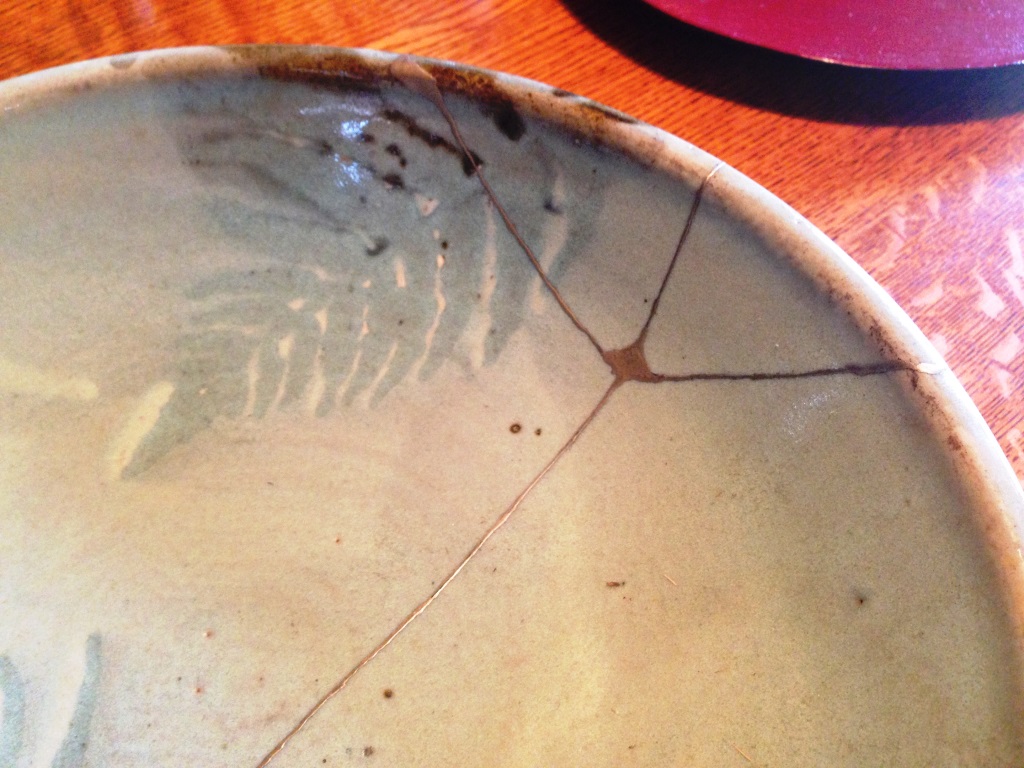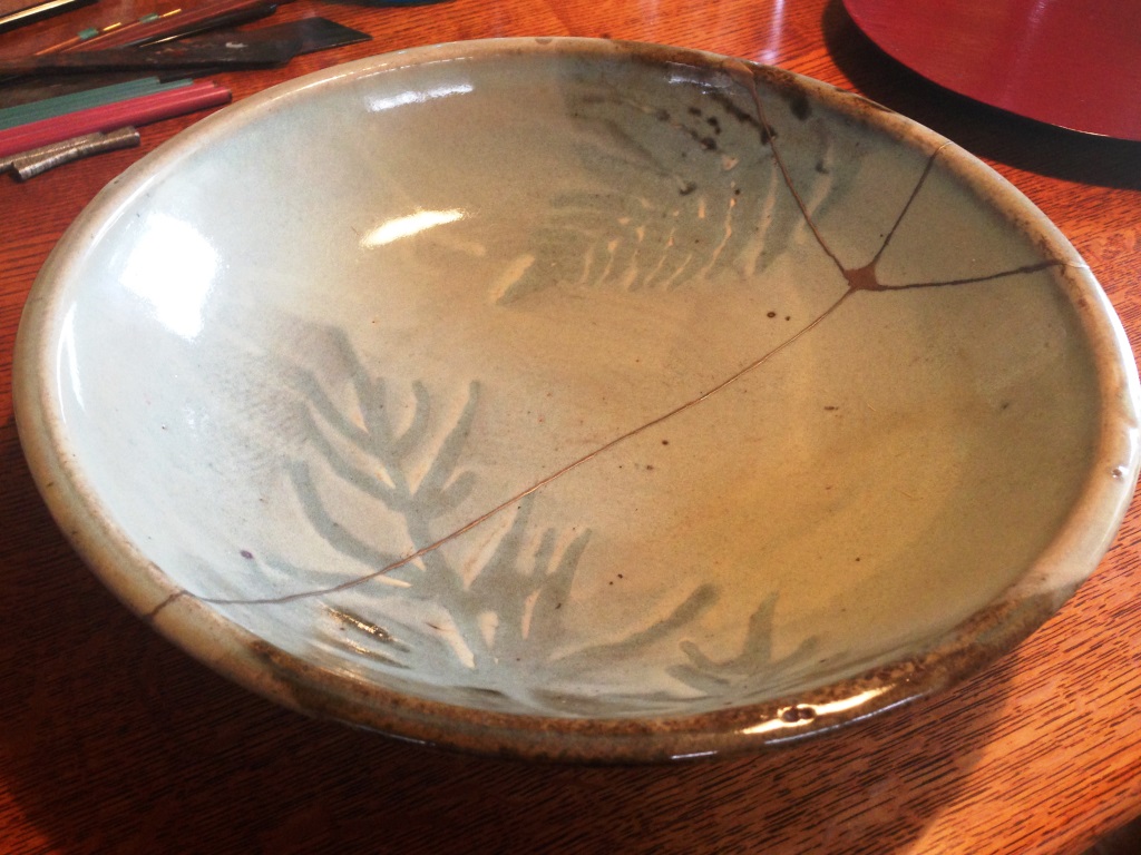 今回の訪問の最大の目的はこれ!「金継ぎ」についてお伺いすることです。お気に入りでよく使っていた器、昔から家にある大切なお皿。使えば使うほど、欠けたり、うっかり割ってしまったりする確率は高くなりますよね。 漆の接着作用を利用して、割れたり欠けたりした器を再生させる技術、金継ぎ。仕上げには金や錫で装飾されていて、美しい独特のラインとなります。 金継ぎが行われるようになったのは安土桃山時代で、茶の湯が盛んになるとともにその技術が確立され、現代に受け継がれています。