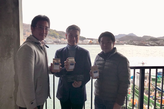 尾道水道に面したオノミチシェアのテラスでシャカシャカ、シャカシャカと豆を炒っていると、だんだんと香ばしい香りが広がって来て、次に豆のはぜる音が心地よく聞こえてきます。