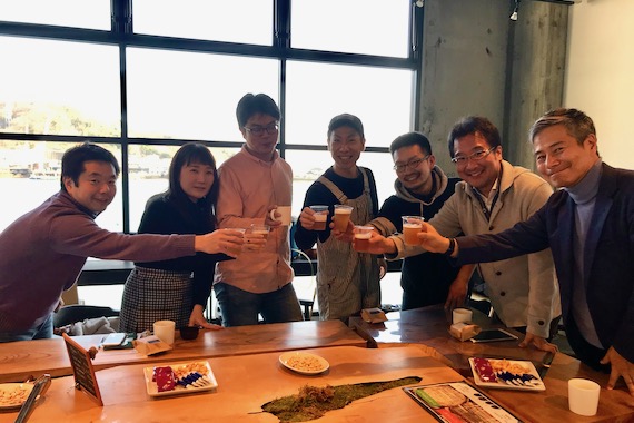コーヒーとビールの思わぬ出会いと、1日の同じ釜の飯ならぬ、同じドリッパーのコーヒーを飲んだ仲間で記念撮影。