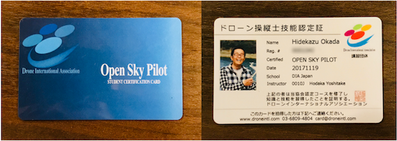 講義受講後、7日以内にDIAのオンライン試験を受験して頂きます。その後、半年以内に10時間の飛行トレーニングをして頂き、全てクリアされますと、ライセンスが発行され、ご自宅に郵送されます。