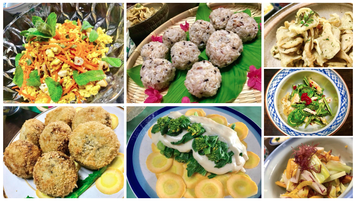 お待ちかねのランチは3人目の講師であるみどりさんによる春の養生食。旬の食材と、尾道近郊で採れた山菜やお庭で採取してきたばかりの野草までを使ったスペシャルランチ。