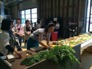 集まったのは、遠くは埼玉から地元尾道まで11名。翌日のTour de Nippon in Onomichiに参加される方も多くいらっしゃいました。このメンバーで、長尾教授のもと、夜のフード&トークイベントに参加する40名分のごちそうを「今、ここ尾道にあるもの」で作ります。