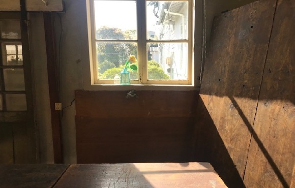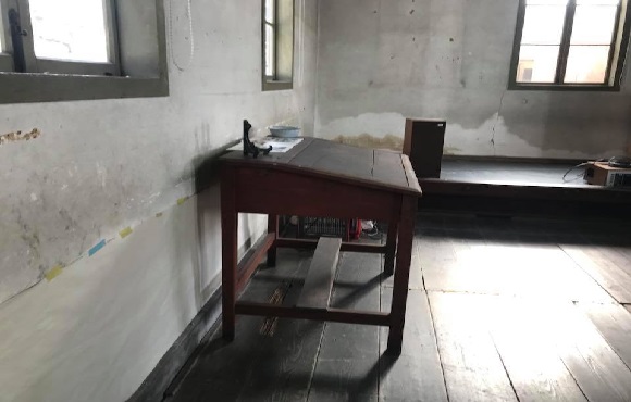 1888年に旧海軍兵学校が築地から江田島に移転して来た際に、そこで働く下士官たちのために建てられたのが海友舎(旧江田島海軍下士卒集会所)です。戦後、この建物は民間に払い下げられ、洋裁学校や会社事務所として使われてきました。一時期、家族が住まわれていたこともあるようです。海友舎にはそうした暮らしの痕跡も数多く残っています。ぜひ、実際にその遺された物たちを手に取ってみてください。きっと言葉では伝わらないものを感じ取れるはずです。