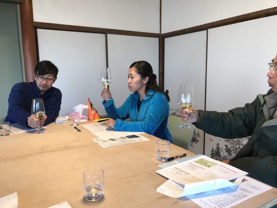 後半は、まず日本ワインの特徴を目、鼻、口で見て嗅いで味わいながら復習していきます。