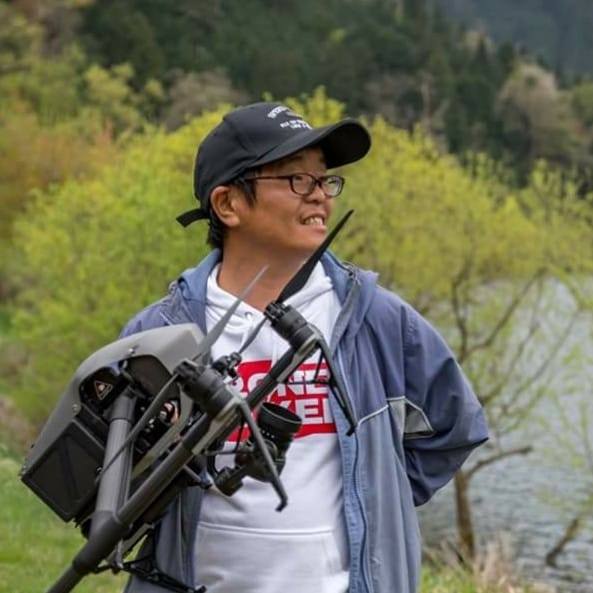 2015年ドローンの官邸墜落事件以降、飛行中に通報されること3回、おまわりさんと顔見知りになり、管轄の警察ではドローンの人と呼ばれている。アウトドア活動で行うツリーイングというロープを使った木登りの際に、樹上も子どもの表情を撮影したいがためにドローンを独学で始める。当時はドローンについて聞ける仲間はおろかドローンの情報自体がほとんどなく、Google翻訳とSNSを頼りに情報収集を行う。未来のデバイスの予感を感じると同時に事故やトラブルの事例も多く「安全運用の周知」が最も大切とドローンの楽しさと安全講座をセットで行う。
